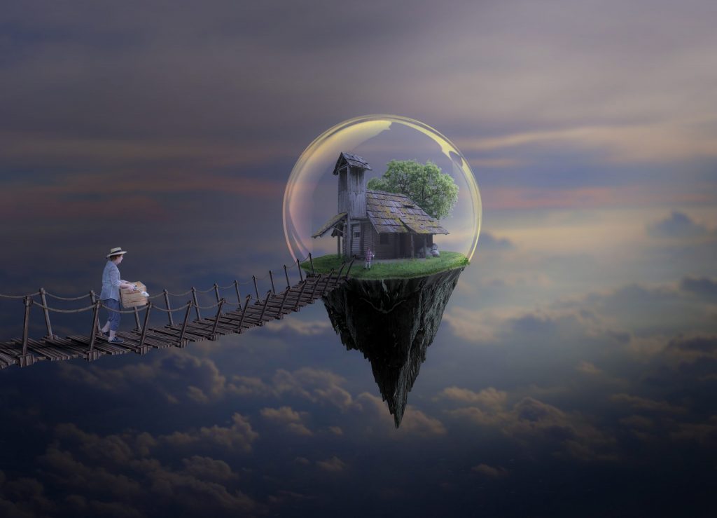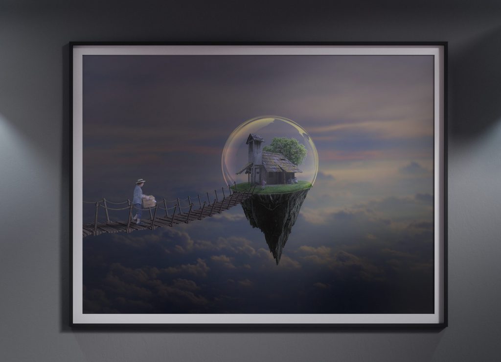 Das Composing Earthy Plateau ist eine Mischung aus Blender 2.82 und Photoshop. Die fliegende Insel wurde zuvor in Blender modelliert und anschließend in RGBA gerendert. Danach lässt sich das ganze in Photoshop zu einer Composition zusammenfügen. Abschließend wurde die Composition noch mit einem Camera RAW Filter bearbeitet.