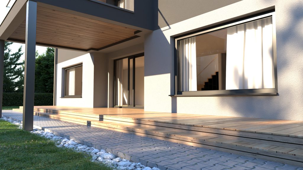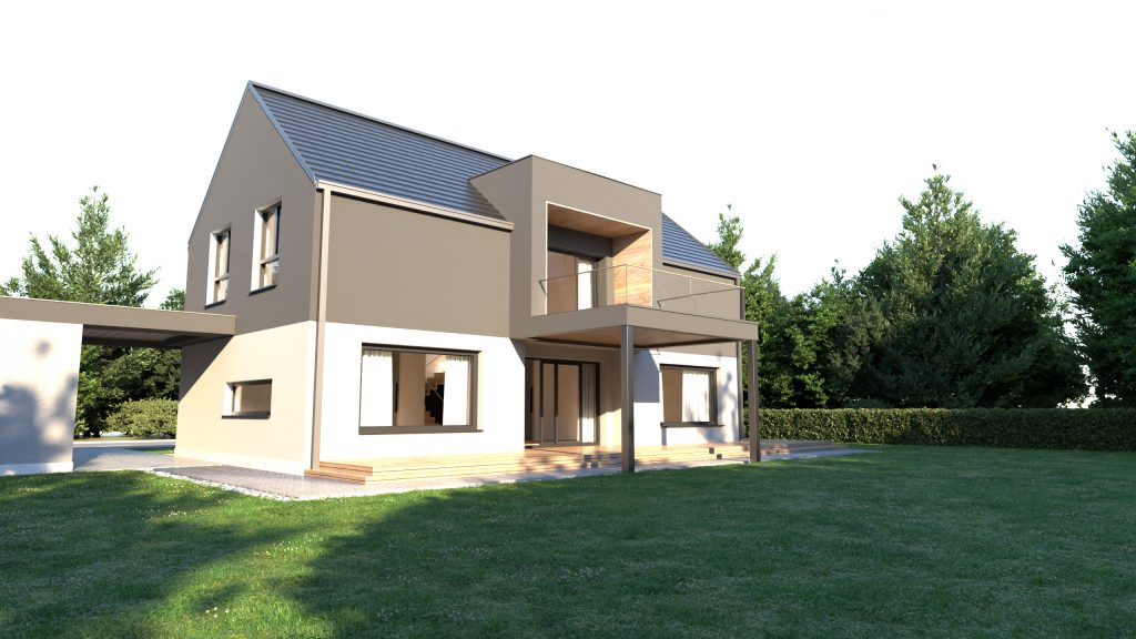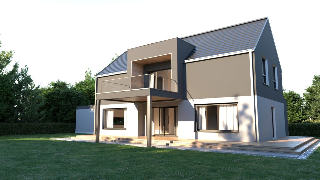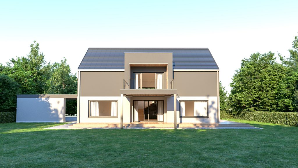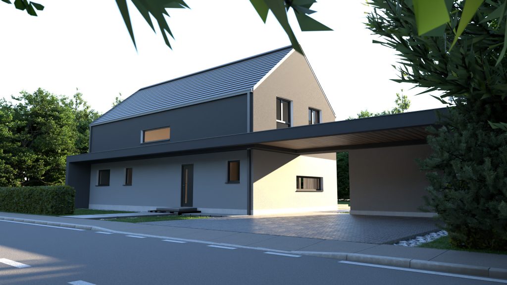 Für dieses Projekt habe ich ein modernes Einfamilienhaus als vollständige 3D-Visualisierung umgesetzt – von der Außenarchitektur bis zu den Innenräumen. Ziel war es, Architektur nicht nur darzustellen, sondern erlebbar zu machen. Klare Linien, reduzierte Formen und natürliche Materialien stehen im Fokus und werden durch realistische Lichtstimmungen unterstützt.