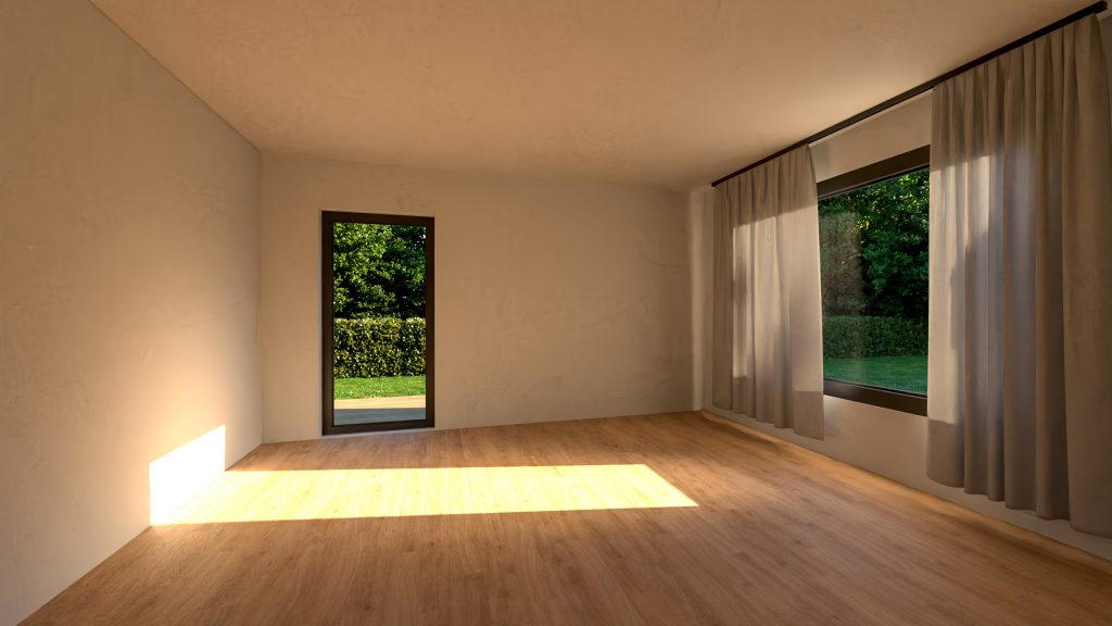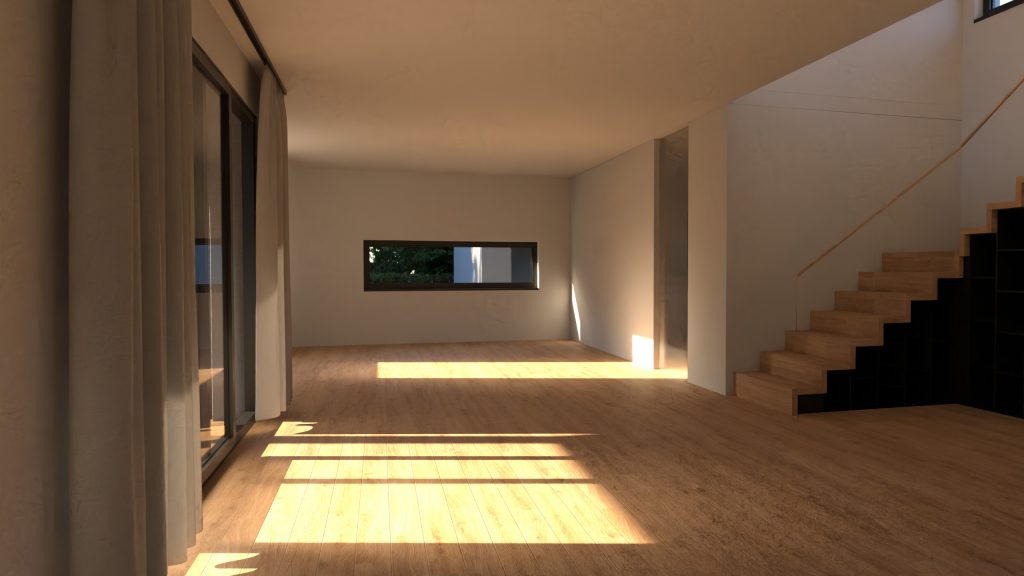 Besonderes Augenmerk lag auf der authentischen Wirkung von Tageslicht, Materialität und Proportionen. Die Visualisierungen zeigen unterschiedliche Perspektiven: Gesamtansichten, architektonische Details sowie stimmungsvolle Innenräume mit realistischem Schatten- und Lichtverlauf. So entsteht ein räumliches Gefühl, das weit über klassische Plandarstellungen hinausgeht.
