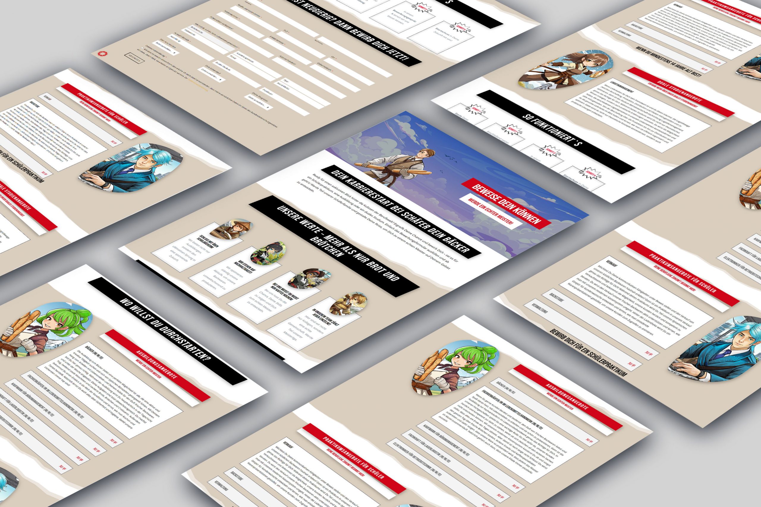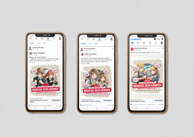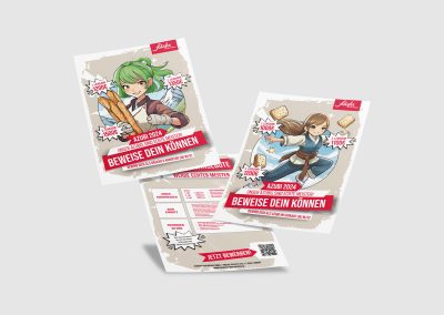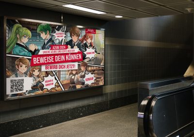 Grundlage dieser epischen Kampagne war eine ausgiebige Planung. Zuerst wurden drei unterschiedliche Themengebiete ausgewählt und grafische Prototypen erstellt. Doch wir wollten nicht nur nach unserem Bauchgefühl gehen, deshalb haben wir junge Leute und Azubis des letzten Jahrgangs befragt. Und welches Thema hat sie umgehauen? Natürlich, das epische Thema Manga und Anime unter dem Namen „Werde ein Meister“!